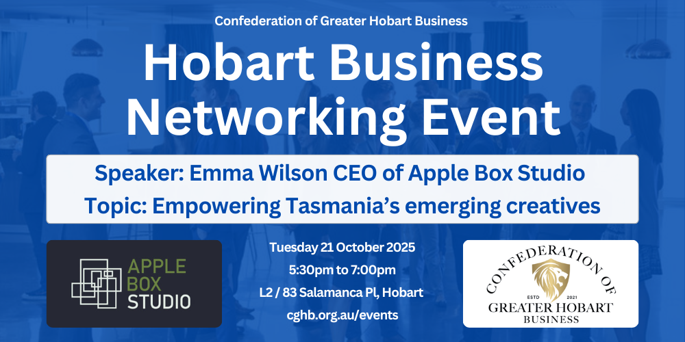 Join us at the next CGHB networking event, where Emma Wilson, CEO and co-founder of Apple Box Studio, will share how the organisation is empowering Tasmania’s emerging creatives through training, mentoring, and industry connections.